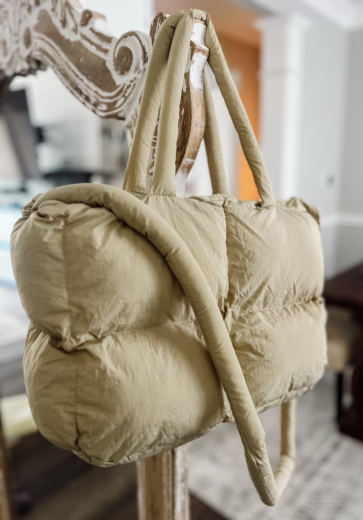 Stay stylish with our quilted grid puffer tote! This nylon tote combines fashion and functionality. Perfect for carrying all your essentials, this tote is a must-have for any outing. Stay chic with our quilted tote.