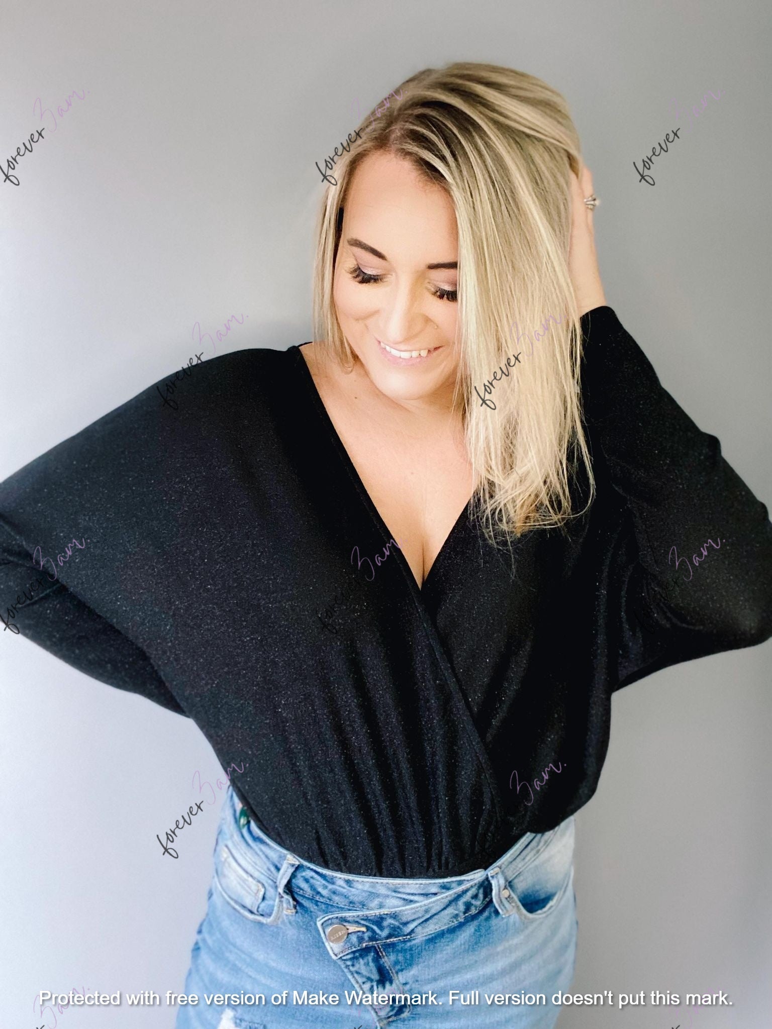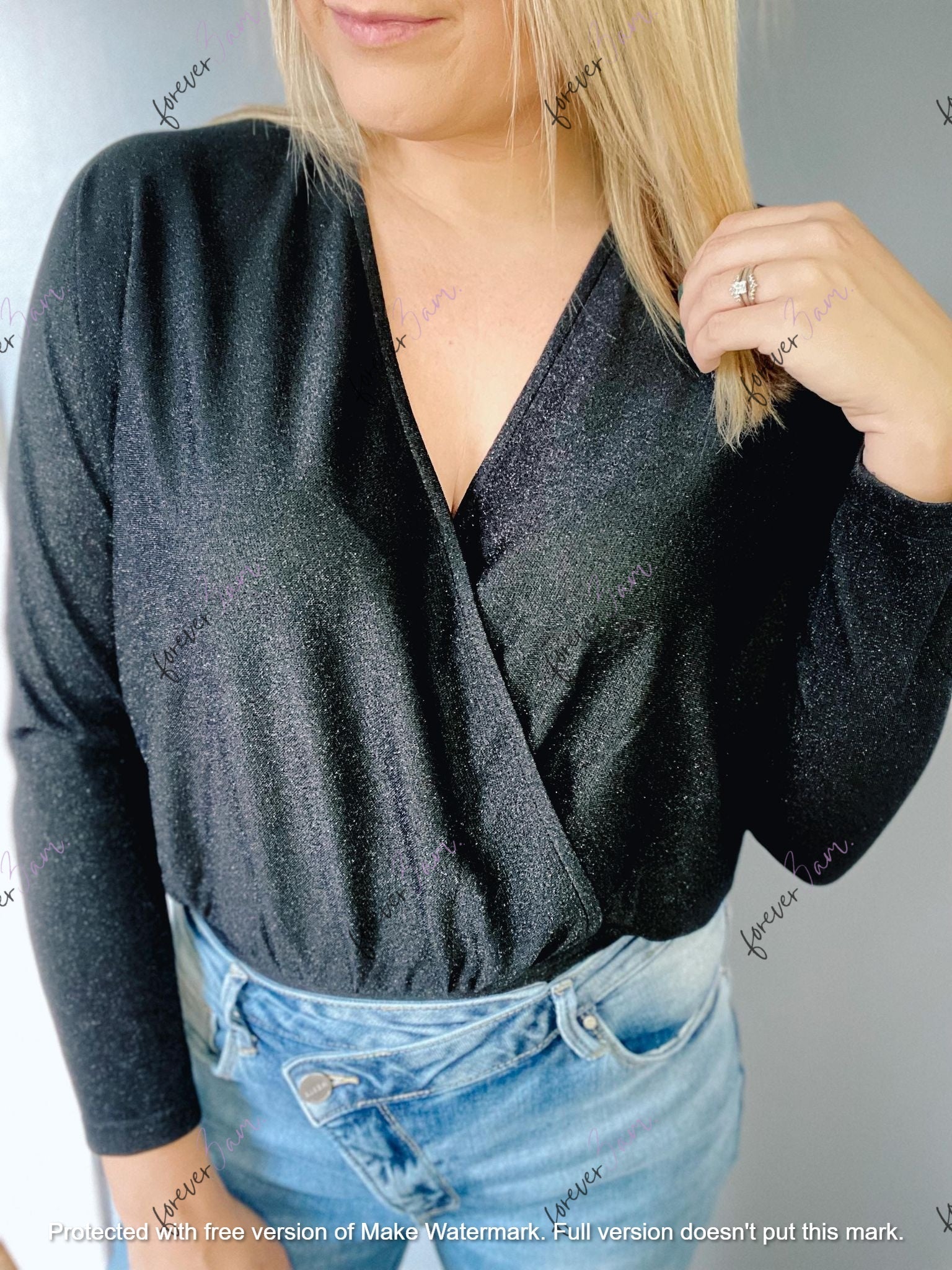 This Custom made and Branded Forever3am Bodysuit is so soft. Stunning and PERFECT for Valentines, weddings, date night or everyday wear. Where by itself or pair with a leather jacket. YOU need this! Oh, did I mention the soft fabric, the simmer in both colors! Also- hidden snap button in front so you don't have to worry about anything showing!