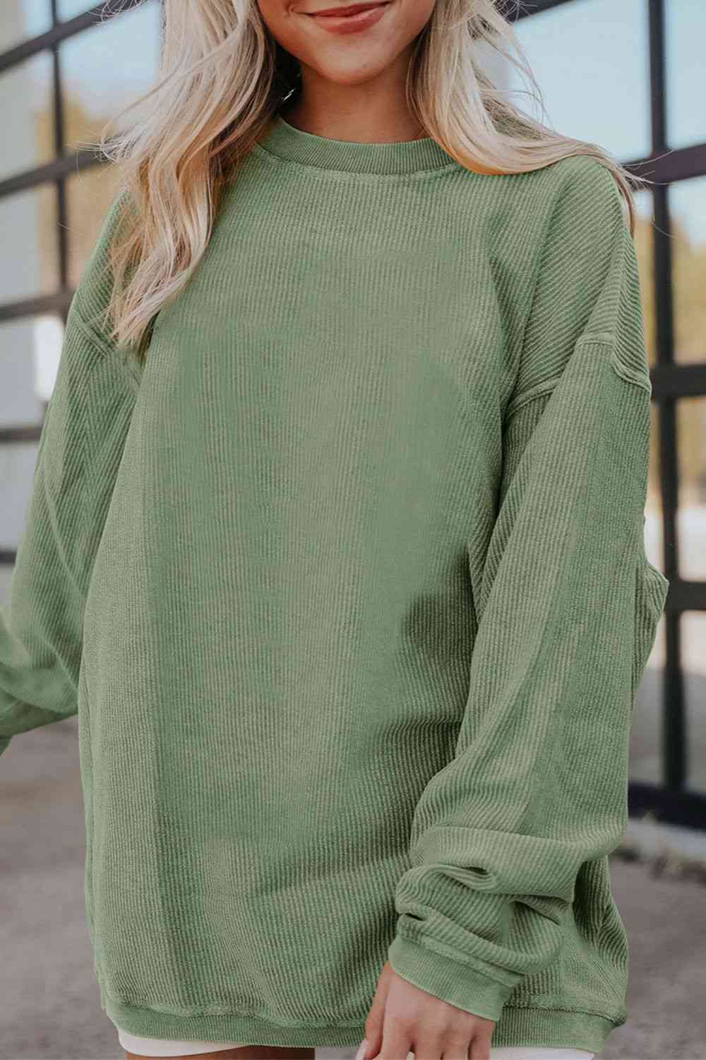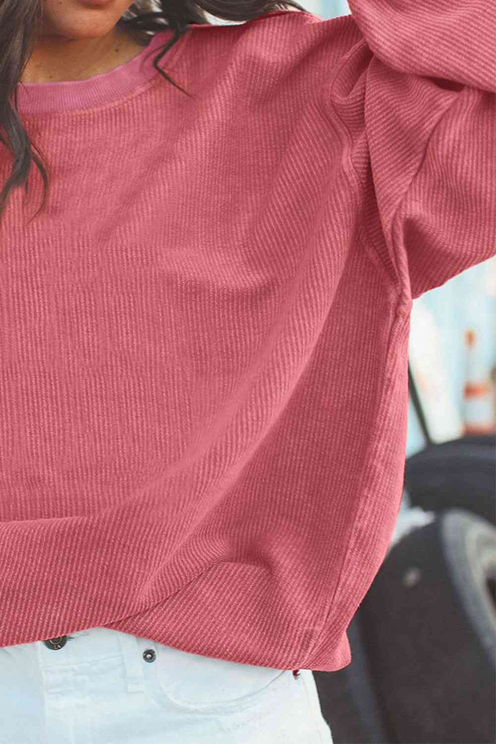 Ribbed Round Neck Drop Shoulder Sweatshirt