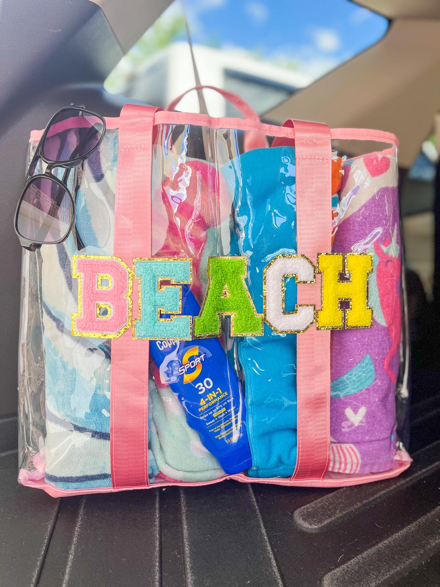 Get ready to flaunt your style with our Clear Embroidered Chenille Letter Totes! Featuring beautifully embroidered Chenille letters, these totes come in two vibrant colors and are made of clear waterproof material. Measuring at 16.9x3.5x13.7 inches, our totes are the perfect blend of practicality and fashion. Make a bold statement with these trendy totes!